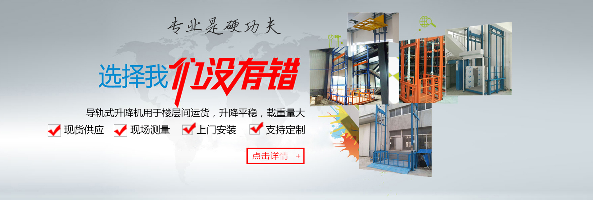 濟南強森升降機械有限公司是專業的液壓貨梯專業生產廠家, 主導產品為:SJY系列貨梯、固定式液壓升降貨梯、導軌式貨梯、導軌式升降機、登車橋、移動式升降機、大噸位貨梯等各種特殊產品,廣泛用于建筑內外裝修、車間、車站、商店、大廳、路燈、物流裝卸、工業流水線、高速公路等各行各業。售后服務鄭重承諾:·公司承諾設備免費保修期一年,終身維護。設備保修期過后,只收取零部件及維修成本費·設備到現場后,由經驗豐富的專業技術人員對設備進行免費調試并負責培訓設...